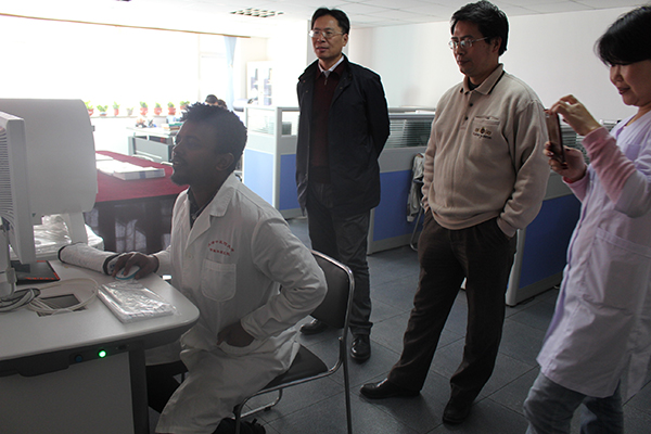 公司领导及于教授与留学生进行交流并指导学生进行实际操作1