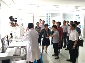 安徽省政协副主任肖超英到我公司考察工作,图为参观中医综合诊断设备