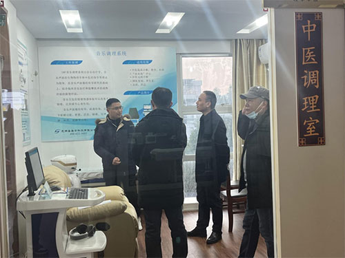 随后章主任一行来到我司中医调理室,并饶有兴致的听取工作人员介绍中医调理室的成立背景、各模块组成及工作原理、项目实施及落地情况,在工作人员演示完中医音乐调理系统之后,对公司将中医理论与人工智能融合表示高度赞赏,并鼓励企业加大宣传推广力度。
